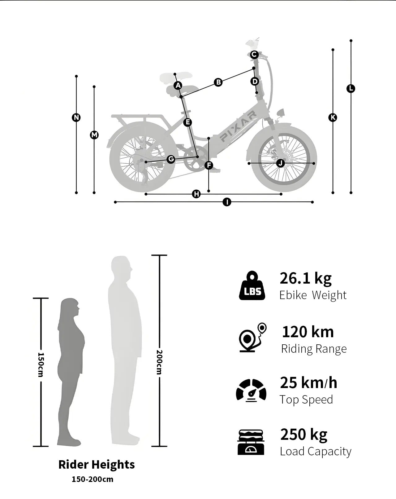 PIXAR Rusher Folding Electric Bike - Perfect for riding on all terrains!